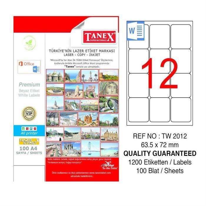 TANEX BILGISAYAR ETIKETI LAZER 64X72 mm
